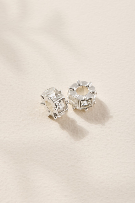 Baguette Crystal Loop Charm Set Silver